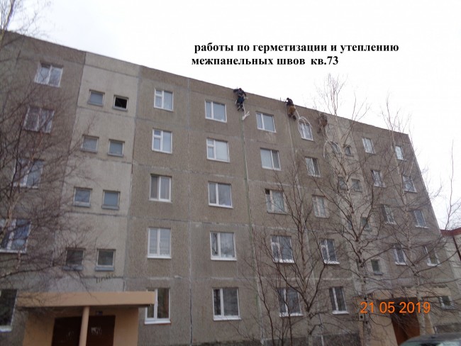 Уважаемые собственники многоквартирного дома! С 21.05.2019 г. в Вашем доме начались работы по герметизации и утеплению межпанельных швов (по квартирам 3,27,36,51,59,69,73,74) Фотографии выполнения работ от 21-22.05.2019г. ФОТООТЧЕТ: