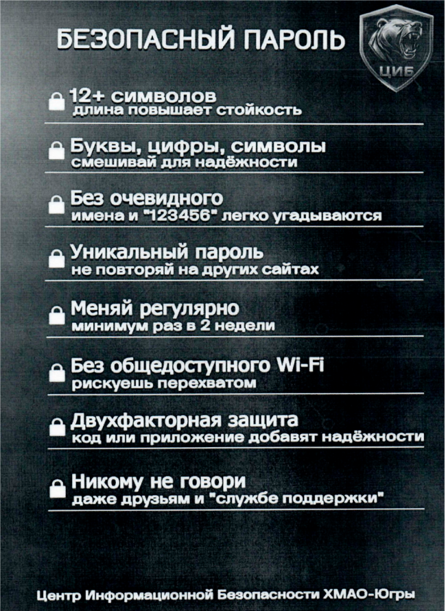 Памятка по созданию безопасного пароля (кибербезопасность)