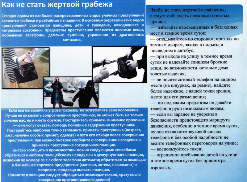 Информационные материалы по профилактике преступлений, совершаемых в общественных местах и на улицах города
